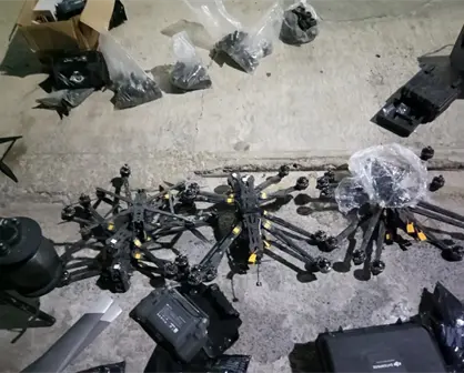 El aseguramiento, coordinado por Guardia Estatal y SEDENA, incluyó además equipos antidrones y un vehículo con reporte de robo; los decomisado quedó a disposición de la FGR.