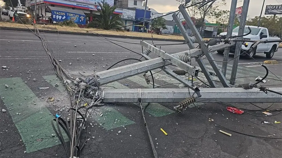 La tensión generada ocasionó que al menos tres postes se vinieran abajo, bloqueando parte de la vialidad y afectando la red de distribución.
