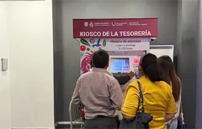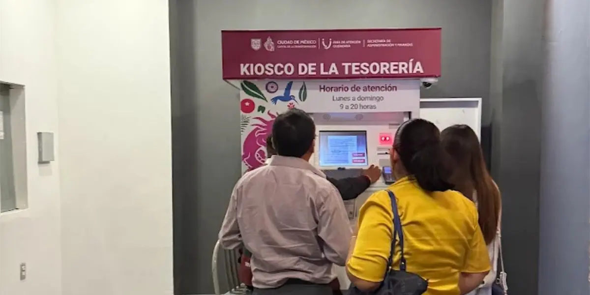 Capitalinos formados en un kiosko de la tesorería de la CDMX para pagar el predial.  Foto: Google Maps