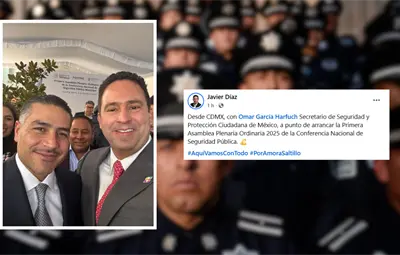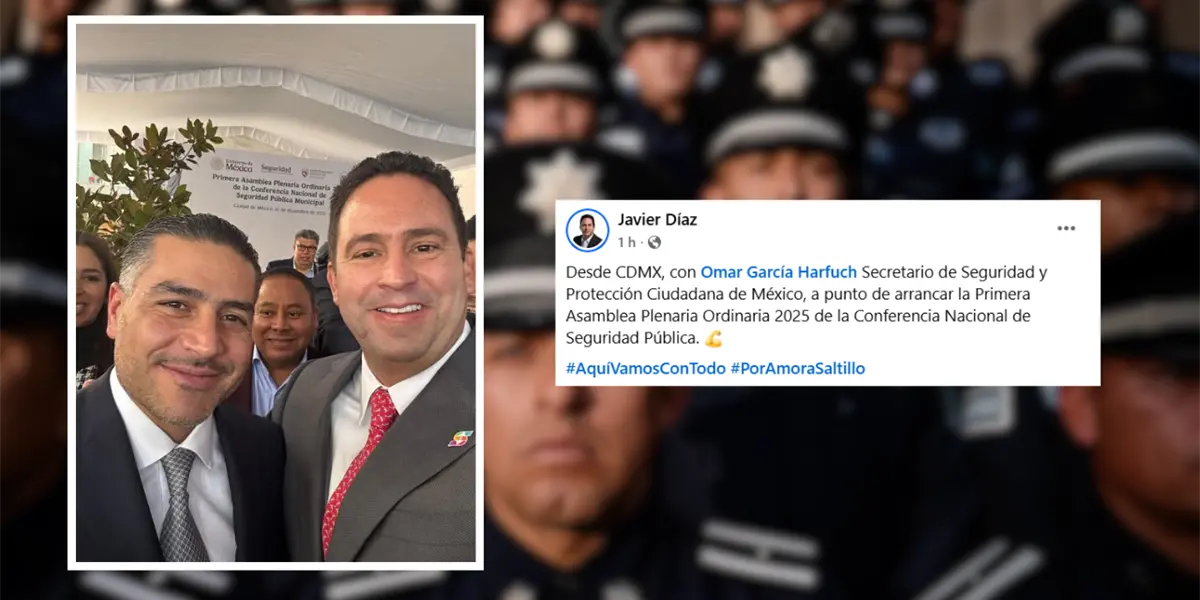 El alcalde de Saltillo, Javier Díaz González, compartió a través de redes sociales una fotografía de su encuentro con el secretario de Seguridad federal, Omar García Harfuch, durante la Primera Asamblea Plenaria Ordinaria 2025 de la Conferencia Nacional de Seguridad Pública, realizada en Ciudad de México.
