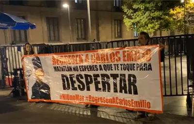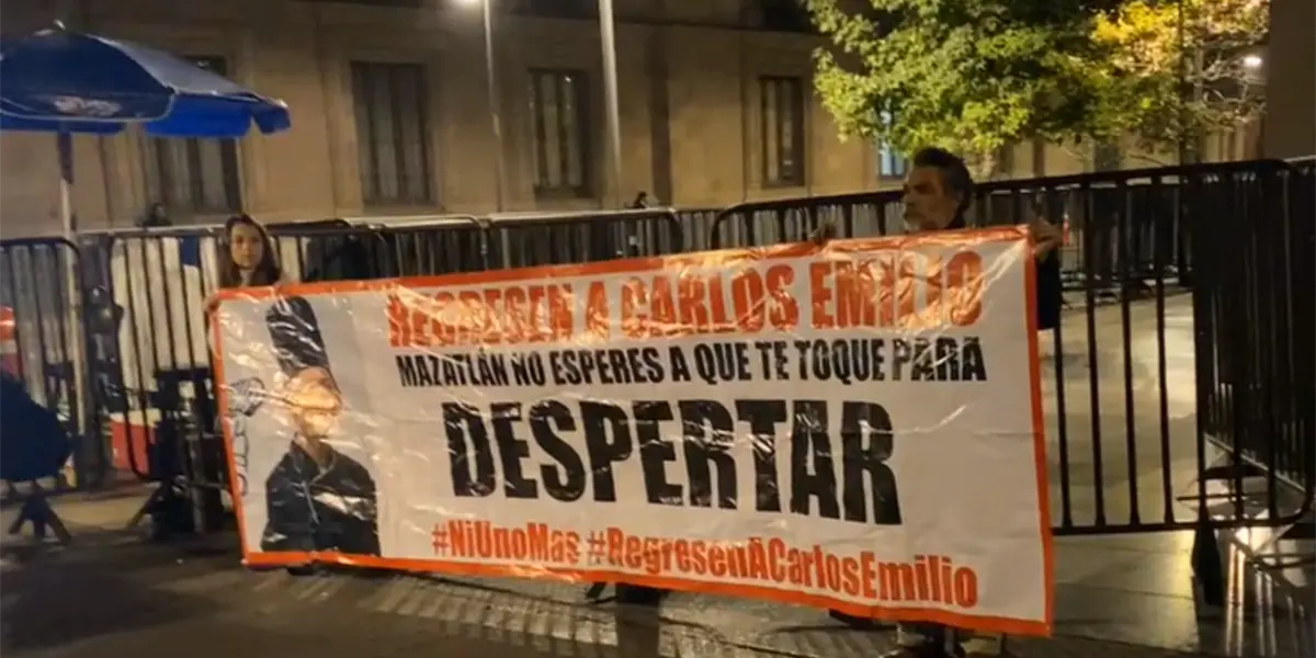 A dos meses de la desaparición de Carlos Emilio, su mamá Brenda Valenzuela Gil hizo una manifestación pacífica frente al Palacio Nacional, en la Ciudad de México, en donde colocó una lona con la foto de su hijo y el siguiente mensaje: “Regresen a Carlos Emilio. Mazatlán, no esperes a que te toque para despertar”.