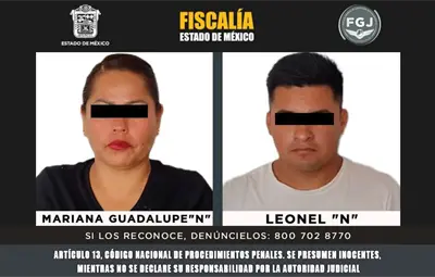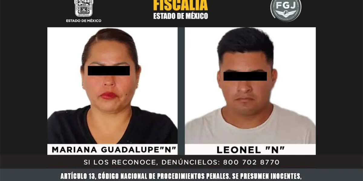 La pareja fue detenida tras un operativo implementado por elementos de la Fiscalía General de Justicia del Estado de México (FGJEM).