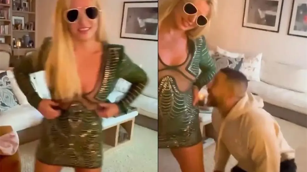 En las imágenes, se puede observar a Britney Spears acompañada de un hombre llamado Dave, quien no duda en agacharse y lamer su pierna desde la rodilla hasta la cadera.