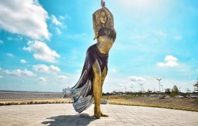 Shakira es inmortalizada luego de que la alcaldía de Barranquilla develó una estatua de más de seis metros de alto hecha de bronce con la imagen y figura de la artista colombiana