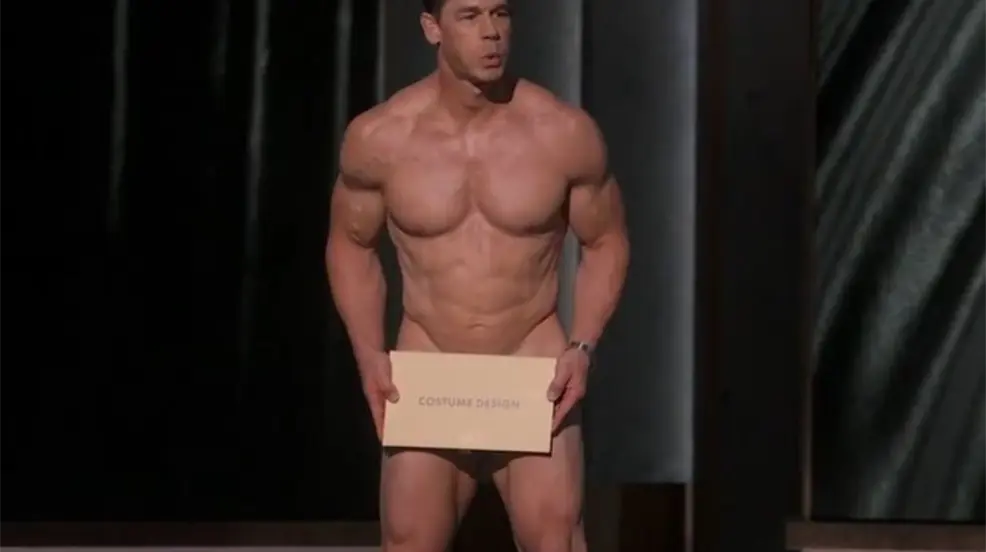 El luchador, John Cena, salió al escenario para presentar el premio al mejor vestuario y lo hizo completamente desnudo.