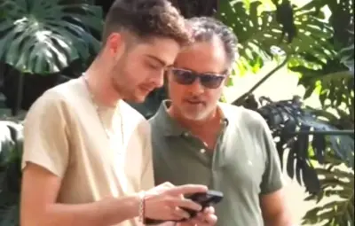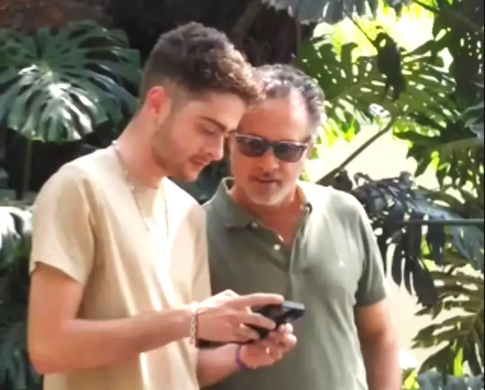 En las fotografías que compartió Nicolás Buenfil conviviendo con su padre, Ernesto Zedillo Jr, se puede ver al influencer mostrándole algo a su padre en el celular.