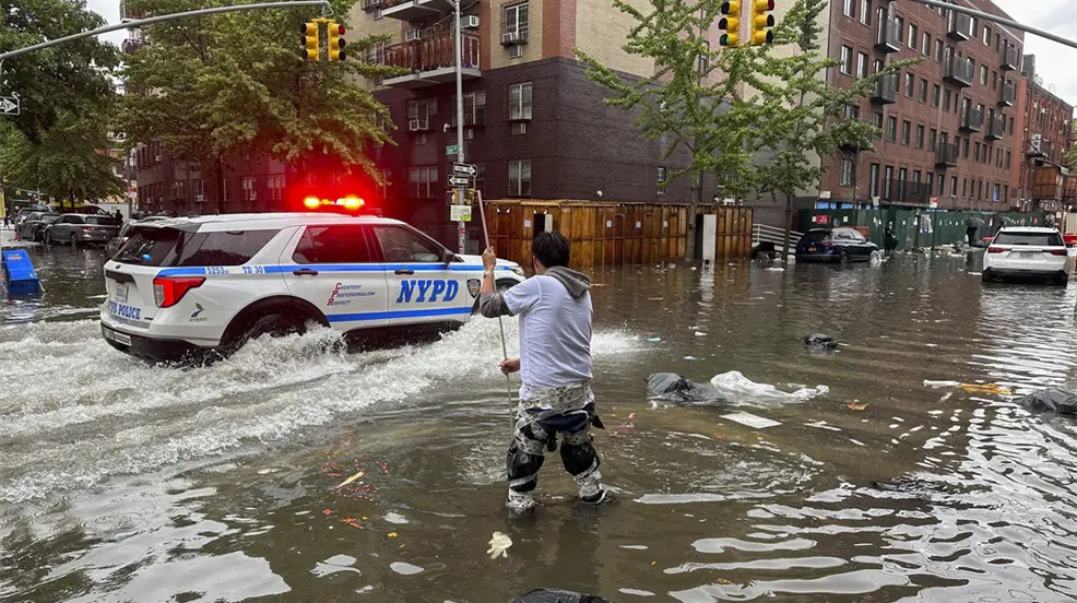 Las inundaciones también han ocasionado problemas en las carreteras, con tramos de FDR Drive inundados y conductores abandonando sus vehículos cuando el agua superó la altura de sus neumáticos. En algunas zonas, como el vecindario de South Williamsburg en Brooklyn, los trabajadores tuvieron que lidiar con desagües obstruidos mientras el agua les llegaba hasta las rodillas.