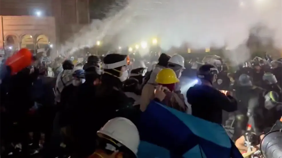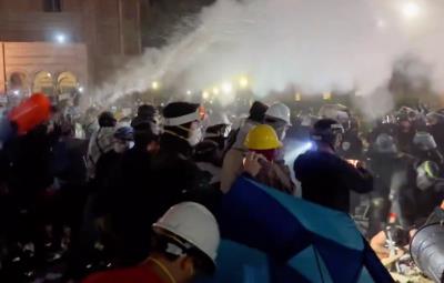 Los hechos ocurrieron la madrugada de este día, cuando cientos de oficiales, acompañados de helicópteros que sobrevolaron el área, irrumpieron en la UCLA para desmantelar el campamento montado por sus estudiantes en apoyo a Palestina, como parte de las manifestaciones que, en las últimas dos semanas, han ocurrido a lo largo de varias universidades de EEUU.