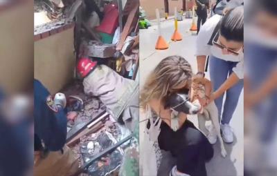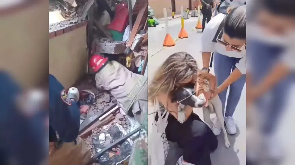 RIONEGRO, Colombia.- Después de la explosión registrada en el sector Alto de la Capilla de Rionegro, en Colombia, una perrita que permaneció sepultada entre los escombros fue encontrada con vida y rescatada por los bomberos.