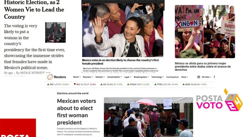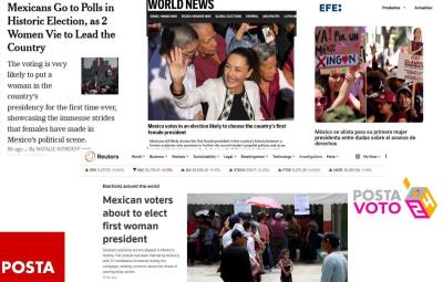 La agencia internacional de noticias Reuters hace una cronología de cómo se han dado las elecciones en México y en su titular menciona "La violencia empaña la votación en México mientras el país se prepara para elegir a la primera mujer presidenta". La agencia también hace especial énfasis en la posible primer presidenta de la República.