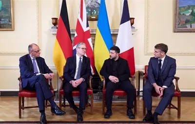 El presidente ucraniano sostuvo una mesa de trabajo de aproximadamente dos horas con el canciller alemán Friedrich Merz, el primer ministro británico Keir Starmer y el presidente francés Emmanuel Macron.