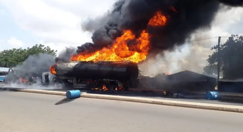 De acuerdo con el comunicado de la NSEMA, el accidente ocurrió cuando un camión cisterna cargado de gasolina Premium Motor Spirit (PMS) colisionó con un camión de remolque que transportaba viajeros y ganado desde Wudil, en el estado de Kano, hacia Lagos; el impacto también involucró a un camión grúa y una camioneta.