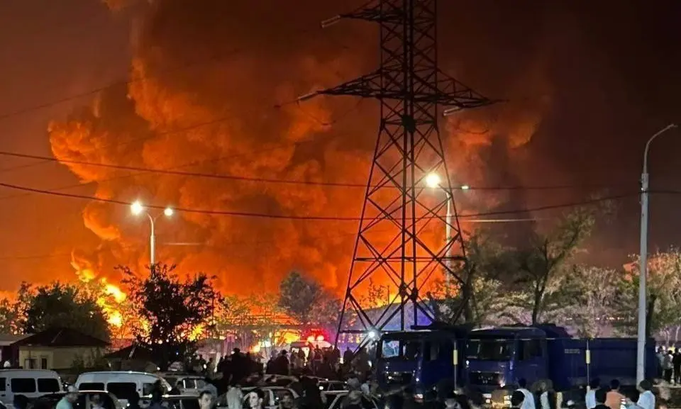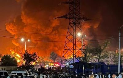 Previamente, un vocero del ministerio de Situaciones de Emergencia, que imputó la explosión a un rayo, dijo que "el incendio fue declarado después de una explosión".Videos difundidos en redes sociales mostraban una gran columna de humo y llamas que se elevan hacia el cielo nocturno de Tashkent.Las ventanas de varias casas en los alrededores volaron por el aire y los interiores resultaron dañados, observaron testigos en el lugar, mientras las ambulancias evacuaban heridos.