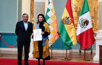 Gobierno boliviano entrega condecoración a embajadora de México por refugiar exautoridades