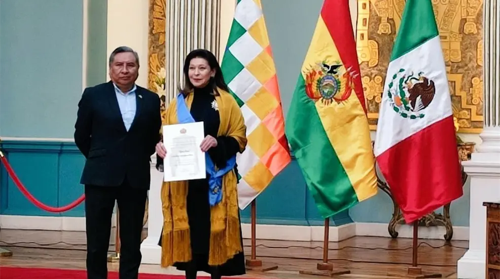 El gobierno de Bolivia otorgó una condecoración a la embajadora de México en La Paz, María Teresa Mercado.