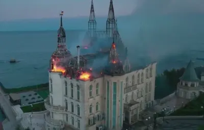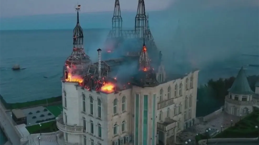 Dicho edificio gótico conocido como "Castillo de Harry Potter" fue alcanzado por misiles rusos que iniciaron un gran incendio en el inferior.