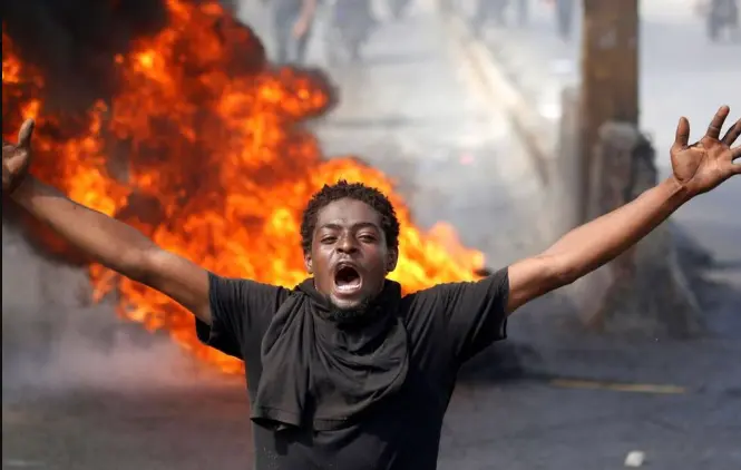 PUERTO PRÍNCIPE, Haití.- Este jueves 14 de marzo, el área metropolitana de Puerto Príncipe fue escenario de ataques, saqueos e incendios contra instituciones públicas y propiedades privadas, incluyendo la residencia del jefe de la Policía Nacional de Haití.