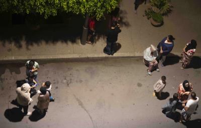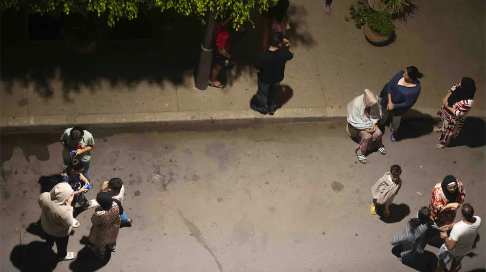 Personas revisan noticias en sus teléfonos después de un sismo en Rabat, Marruecos, el viernes 8 de septiembre de 2023. (AP Foto/Mosaab Elshamy)