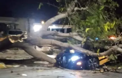 Accidente inesperado en Avenida Itzaes: Árbol cae sobre patrulla de la SSP