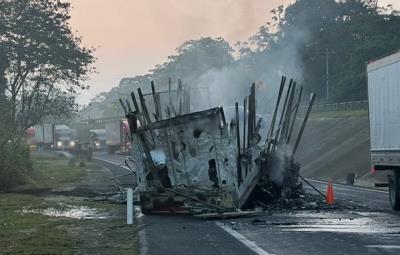 Momentos más tarde, un tráiler que trasladaba material de concreto en la vía Villahermosa - Escárcega terminó perdiendo el control, lo cual ocasionó que la unidad se descarrilara y se saliera de la carretera.
