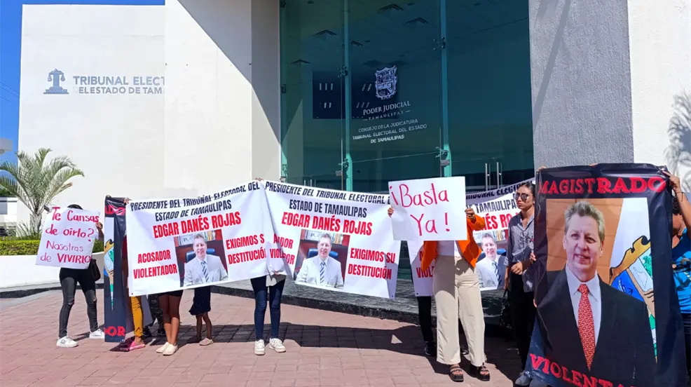 El motivo de la manifestación es que buscan hacer presión para lograr resolver dos denuncias en contra del presidente del Tribunal Electoral de Tamaulipas, el magistrado Edgar Danés Rojas, pues existen dos carpetas de investigación por denuncias en su contra por acoso sexual, una de las denuncias hecha por una menor de edad, por lo que no se pudieron compartir sus datos.