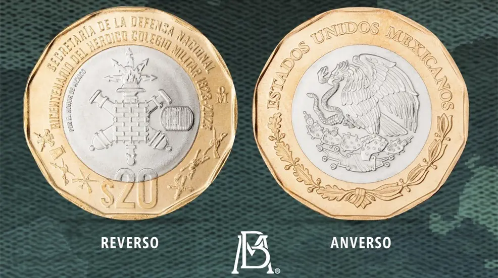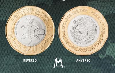 Moneda conmemorativa del bicentenario del Heroico Colegio Militar. Foto. Banxico