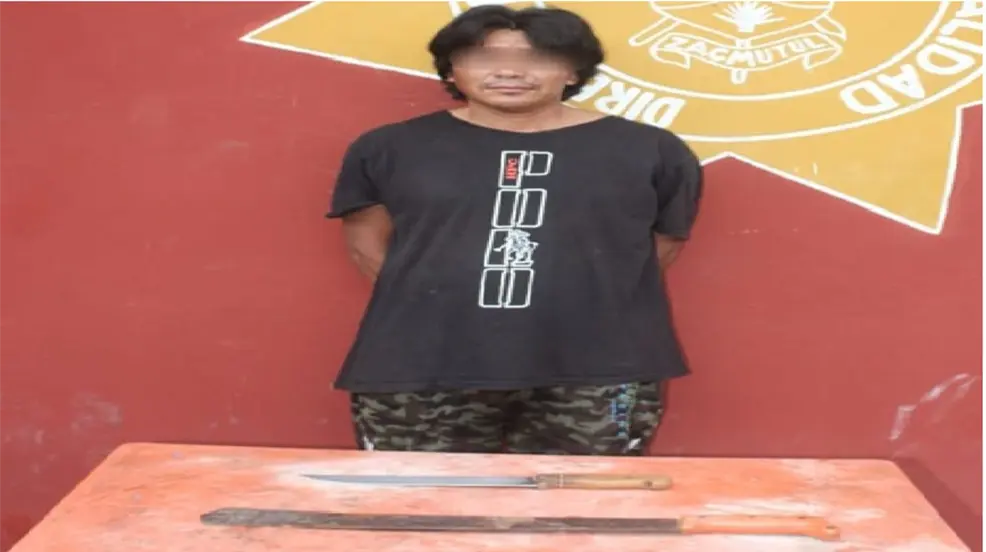 Arrestan a hombre por amenazar con un machete a su familia en Motul