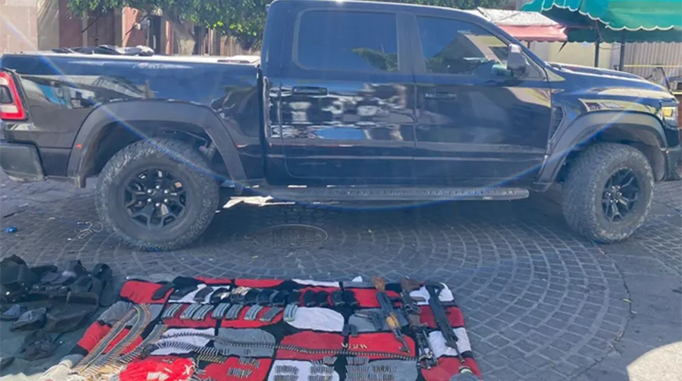 En las inmediaciones de la calle Coronel Jesús Mejía y la avenida José Minero Roque, los guardias nacionales observaron una camioneta abandonada con la puerta del conductor abierta y encendida. Ante esta situación, el personal de la Guardia Nacional se acercó al vehículo y se percató de la presencia de armamento en su interior. Sin embargo, no encontraron a ninguna persona a bordo. Rápidamente, se desplegó un operativo de seguridad perimetral con el objetivo de localizar a los responsables, pero no se obtuvieron resultados positivos.