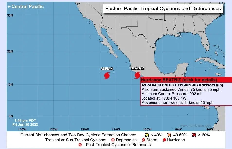 Se prevé que el vórtice de Beatriz se mueva cerca o sobre partes de la costa en las próximas horas antes de alejarse el domingo y el lunes.