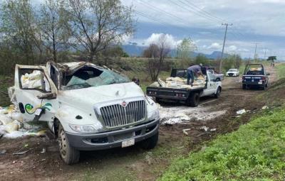Camión vuelca en su trayecto de Nuevo Ideal a Santiago Papasquiaro