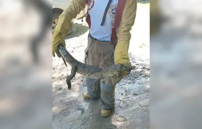 Según los primeros informes se trata de una cría de cocodrilo de aproximadamente un metro de largo la cual fue reubicada a su hábitat natural.