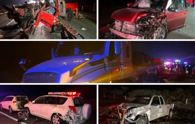 GONZÁLEZ, Tamaulipas.- Un choque múltiple se registró la noche de este viernes en el kilómetro 15 de la carretera 81, a la altura del municipio de González, lo que provocó que la circulación fuera cerrada durante algunas horas.