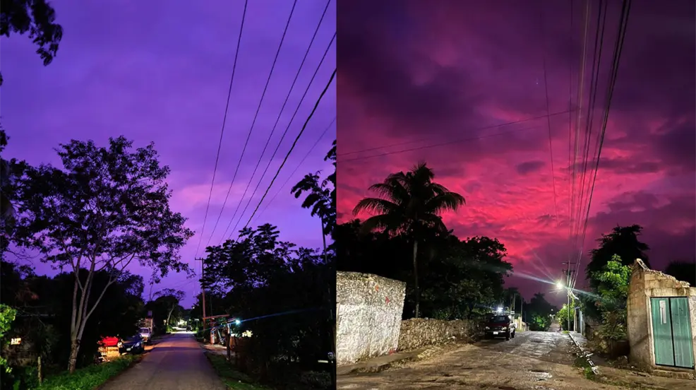 MÉRIDA, Yucatán.- Tras el paso del huracán Milton y a la par de las imágenes de los estragos que causó en los municipios costeros, en redes sociales comenzaron a circular fotografías del cielo de la capital yucateca pintado de un color morado, que causó la sorpresa de muchos.