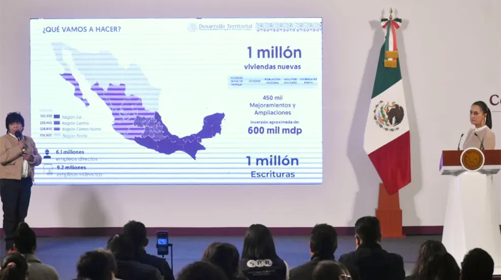 CIUDAD DE MÉXICO.- Durante la "Mañanera del Pueblo" de la presidenta Claudia Sheinbaum, se presentó un nuevo prorgama de vivienda para su sexenio, con el que se busca construir un millón de viviendas nuevas en México y realizar 450,000 mejoramientos para 2030, con prioridad para grupos vulnerables, enfocado en zonas de alto rezago y marginación.