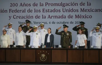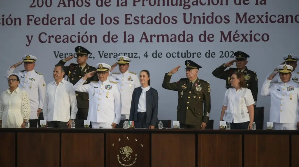 La presidenta de México, Claudia Sheinbaum, conmemoró 200 años de promulgación de constitución de 1824 y 203 años de la creación de la Armada de México en Veracruz.