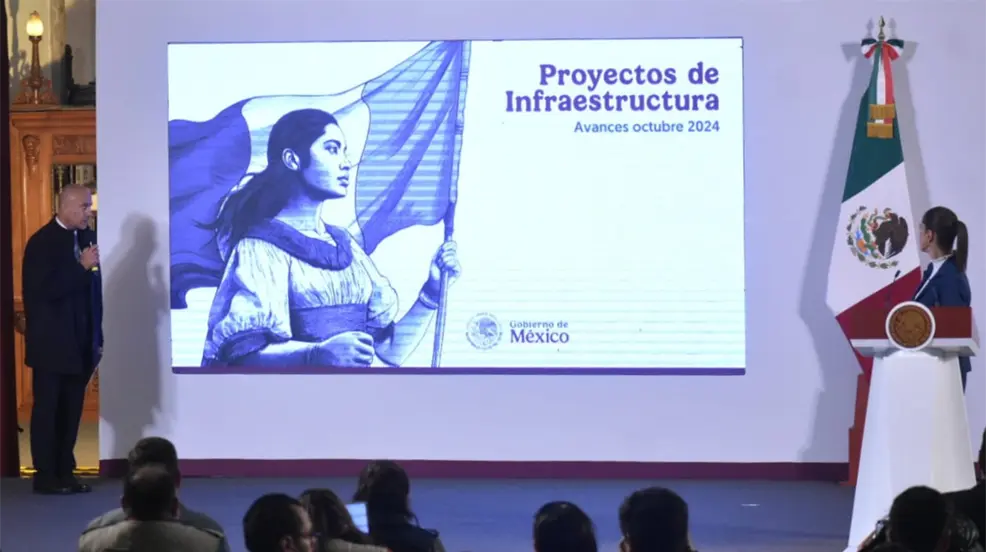 CIUDAD DE MÉXICO.- En conferencia de prensa, la presidenta Claudia Sheinbaum Pardo, junto al secretario de Infraestructura, Comunicaciones y Transportes, Jesús Esteva Medina, presentó las obras pendientes de la administración de AMLO que seguirán en ejecución durante su sexenio.