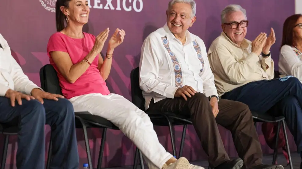 “Además, vamos a seguir apoyando al gobernador Rocha, vamos a seguir apoyando a Sinaloa. Si me lo permiten, vamos a regresar porque hemos estado platicando con Rubén Rocha para informarle las obras, los proyectos que van a continuar en este grandioso estado de Sinaloa”, anunció.