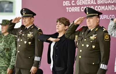 La gobernadora Delfina Gómez Álvarez asistió a la Toma de Posesión del Cargo y Protesta de Bandera del General Brigadier Diplomado de Estado Mayor, Claudio Edmundo Huizar de la Torre.