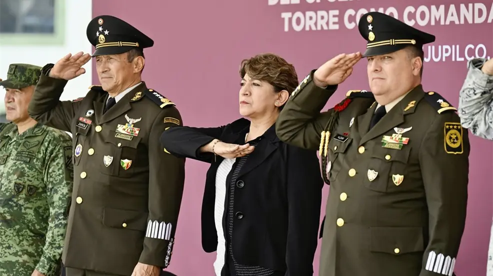 TEJUPILCO, Estado de México.- La Gobernadora del Estado de México, Delfina Gómez Álvarez, asistió a la Toma de Posesión del Comandante del Mando Especial Texcaltitlán, Claudio Edmundo Huizar de la Torre, como parte de la Estrategia de Seguridad del Estado Mexicano para devolver la paz a la región sur del estado.