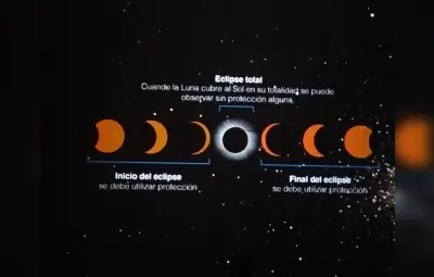 DURANGO, Durango.- El tan esperado eclipse solar total que se podrá apreciar en 10 municipios de Durango el 8 de abril, tendrá tres fases que según especialistas son los momentos claves de este fenómeno que tendrá una duración de poco más de tres horas.