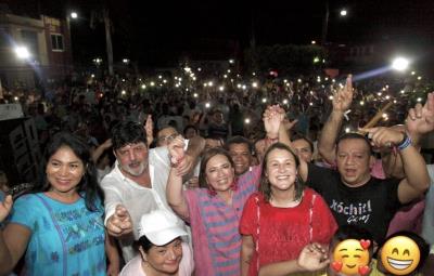 Con velas blancas en las manos y al grito de “¡Presidenta!”, Gálvez Ruiz realizó una caminata con simpatizantes por las calles del municipio guerrerense que el pasado 25 de octubre fue devastado por el paso del huracán Otis, que impactó en su categoría 5, la más alta en la escala Saffir-Simpson.