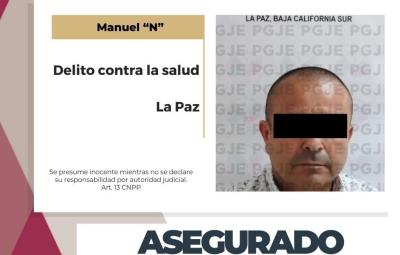La Unidad Especializada en la Investigación del Delito de Comercio de Narcóticos desplegó un dispositivo de vigilancia, que resultó en el aseguramiento de Manuel N en el Boulevard Forjadores y la Calle Gilberto Arreola, ubicada en la Colonia Mezquitito en el municipio de La Paz.