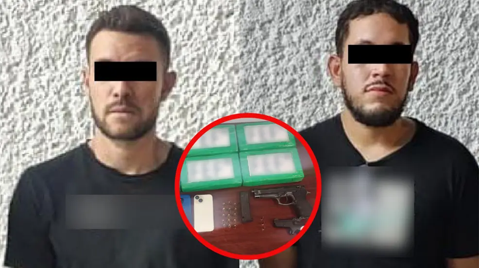 Fueron arrestados en la colonia Los Manzanos luego de ser descubiertos con 6 kilos de cocaína, dos armas de fuego y 18 cartuchos útiles.