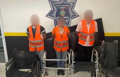 Detienen a tres personas por robo de sillas de ruedas y andaderas