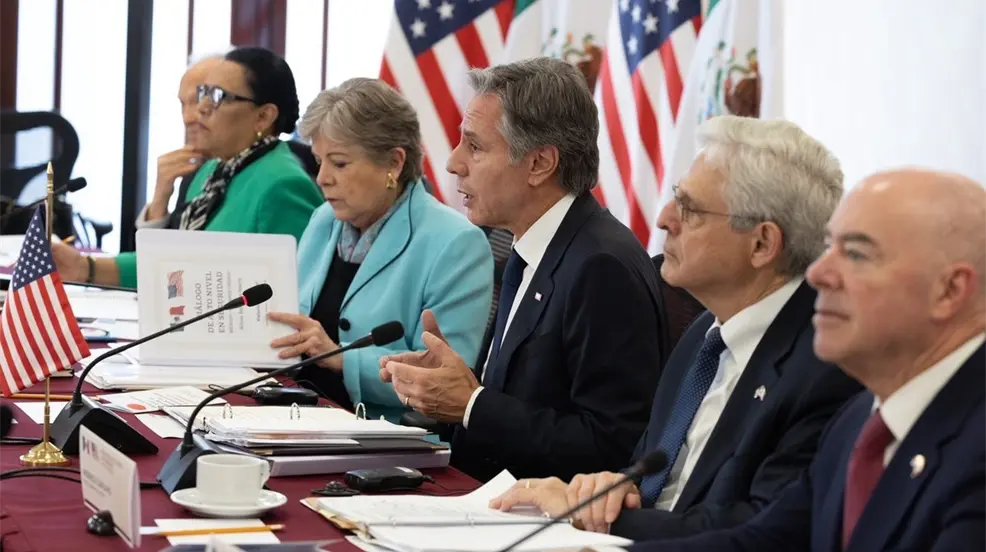 El secretario de Estado, Antony Blinken y el secretario, Alejandro Mayorkas, encabezan el Diálogo de Alto Nivel en Seguridad entre México y Estados Unidos donde los ejes son drogas, armas y migración.
