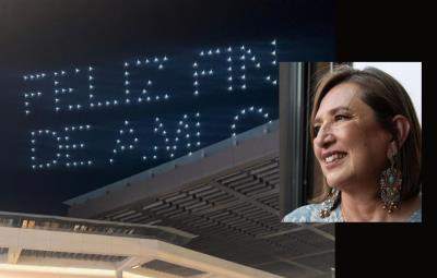 CIUDAD DE MÉXICO.- La noche de este jueves, el cielo de la Ciudad de México se iluminó con mensajes en apoyo a la precandidata presidencial de 'Fuerza y Corazón por México'. Los drones con luces formaron varias frases como 'Feliz fin de AMLO', que pudieron ser observadas por los habitantes de las alcaldías Coyoacán, Azcapotzalco y Benito Juárez.