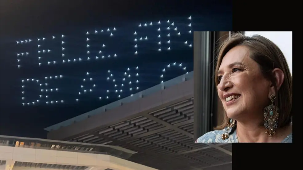 Drones forman frases en apoyo a Xóchitl Gálvez en cielo de la CDMX