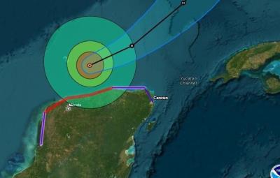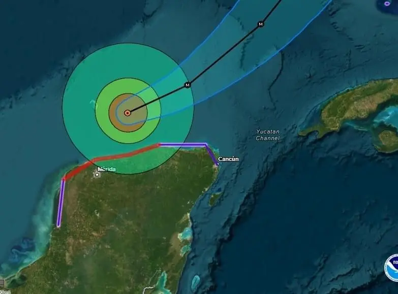 Hasta las 3 de la mañana de este martes el ciclón se encontraba a 107 km al noroeste de Río Lagartos y a 140 km al noreste de Puerto Progreso