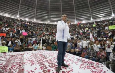 DURANGO, Durango.- El aspirante a la candidatura presidencial de MORENA, Adán Augusto, estuvo por segunda vez en Durango para brindar una asamblea informativa, donde elogió al Gobernador Esteban Villegas por haber ya iniciado con la distribución con los nuevos libros de texto gratuitos que ofrece la SEP.