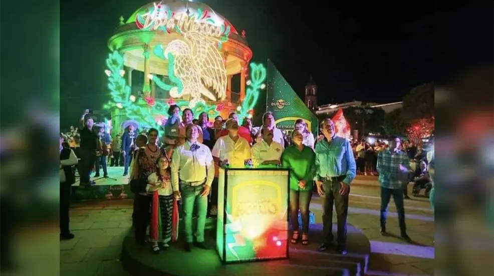 En el kiosko de la Plaza de Armas, se instaló un gigante escudo nacional, para luego iniciar con la quema de fuegos artificiales que iluminaron el cielo duranguense con los colores verde, blanco y rojo, tradicionales de nuestra bandera.